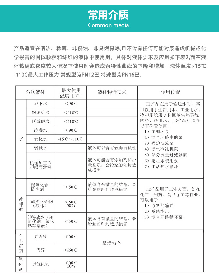 - 功率范圍:冷熱水,物理化學(xué)性質(zhì)的液體.